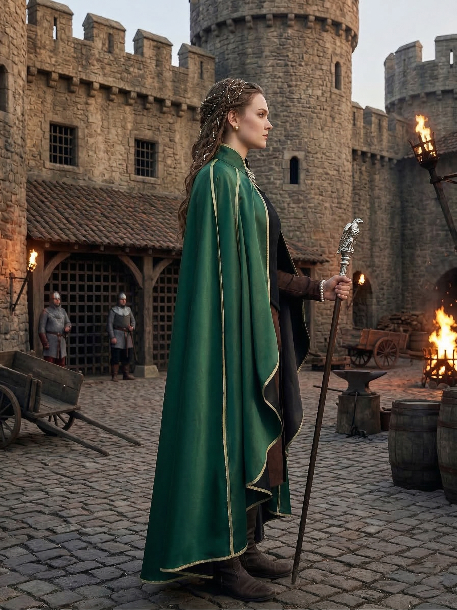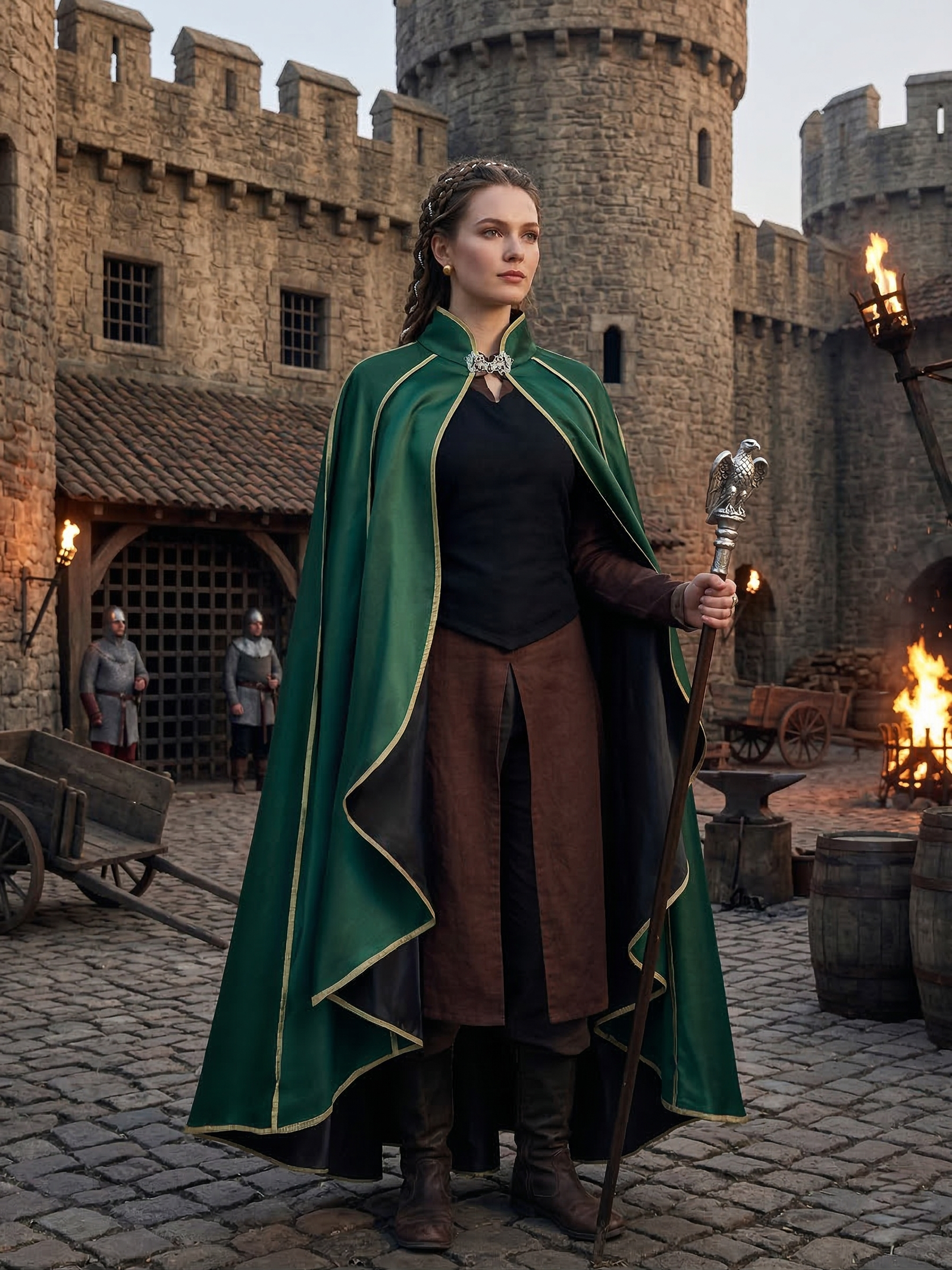 Kolor zielony od wieków kojarzony był z naturą, spokojem i harmonią. Dlatego zielona peleryna doskonale wpisuje się w estetykę dawnych czasów, podkreślając związek człowieka z przyrodą. To idealny wybór dla kobiet, które cenią styl historyczny, fantasy oraz romantyczne inspiracje.